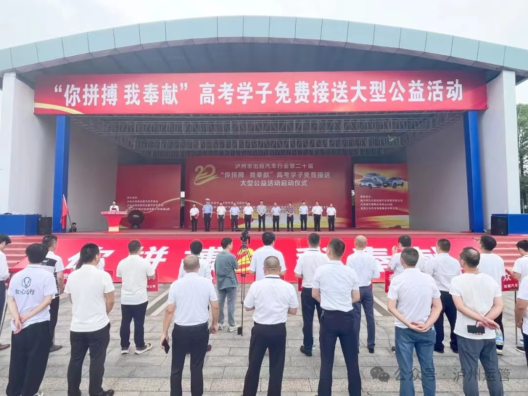 6月5日由瀘州市道路運(yùn)輸協(xié)會(huì)承辦的第二十屆“你拼搏、我奉獻(xiàn)”高考學(xué)子免費(fèi)接送公益活動(dòng)在西南商貿(mào)城五區(qū)舉行啟動(dòng)儀式,省交通廳、市上有關(guān)領(lǐng)導(dǎo)和瀘州市16家巡游出租汽車公司及網(wǎng)約車公司650輛參加此次送考活動(dòng)的啟動(dòng)儀式,隨著市領(lǐng)導(dǎo)宣布活動(dòng)正式開始,參加活
